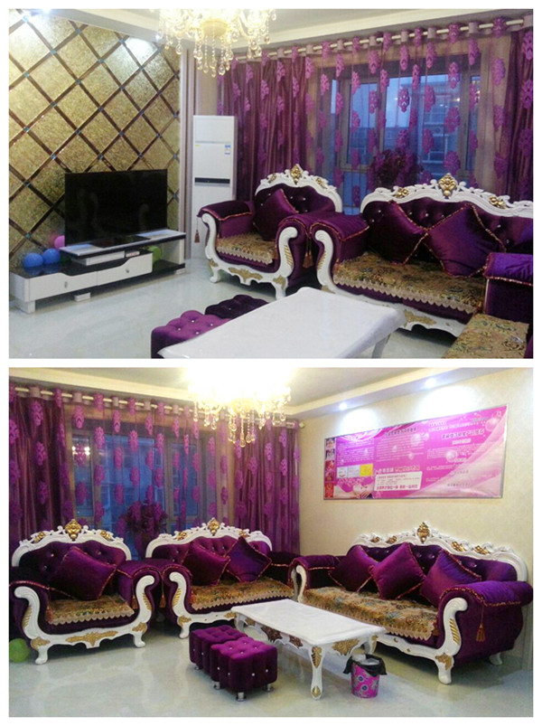 这是美容院的休息区,欧式的软体沙发散发着高端的韵味,为什么会选用紫色,因为紫色为女性比较喜爱的颜色,看上去比价奢华,一般被有豪门贵妇所喜爱,另外,紫色比较聚财,代表着一种运势,有个成语说的好,叫做紫气东来,确实如此。在美容院,无处不透漏着营销的气息,沙发后面的背景墙上,挂着美容院特色项目的介绍,沙发前面,42英寸液晶电视供休息的顾客休息时观看,另外还可以展示花季传媒APP网站免费进入花季传媒免费网站信息以及广告片。