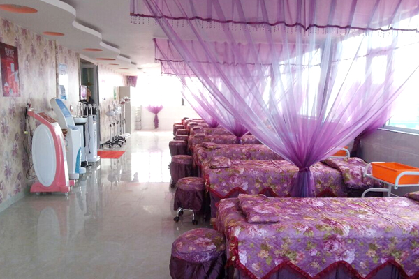 这个美容间够气派吧,大致一数,里面摆放着八张美容床整齐的排列着,暗紫色的花纹床罩以及每两张床中间紫色的窗纱,让美容院倍感温馨;还有那一排高端的美容仪器伫立在墙边,时刻准备着为顾客做护理所使用。这样大的规模,不禁让小编想到了花季传媒APP网站免费进入培训学校的实操室,仿佛这就是花季传媒APP网站免费进入培训基地。